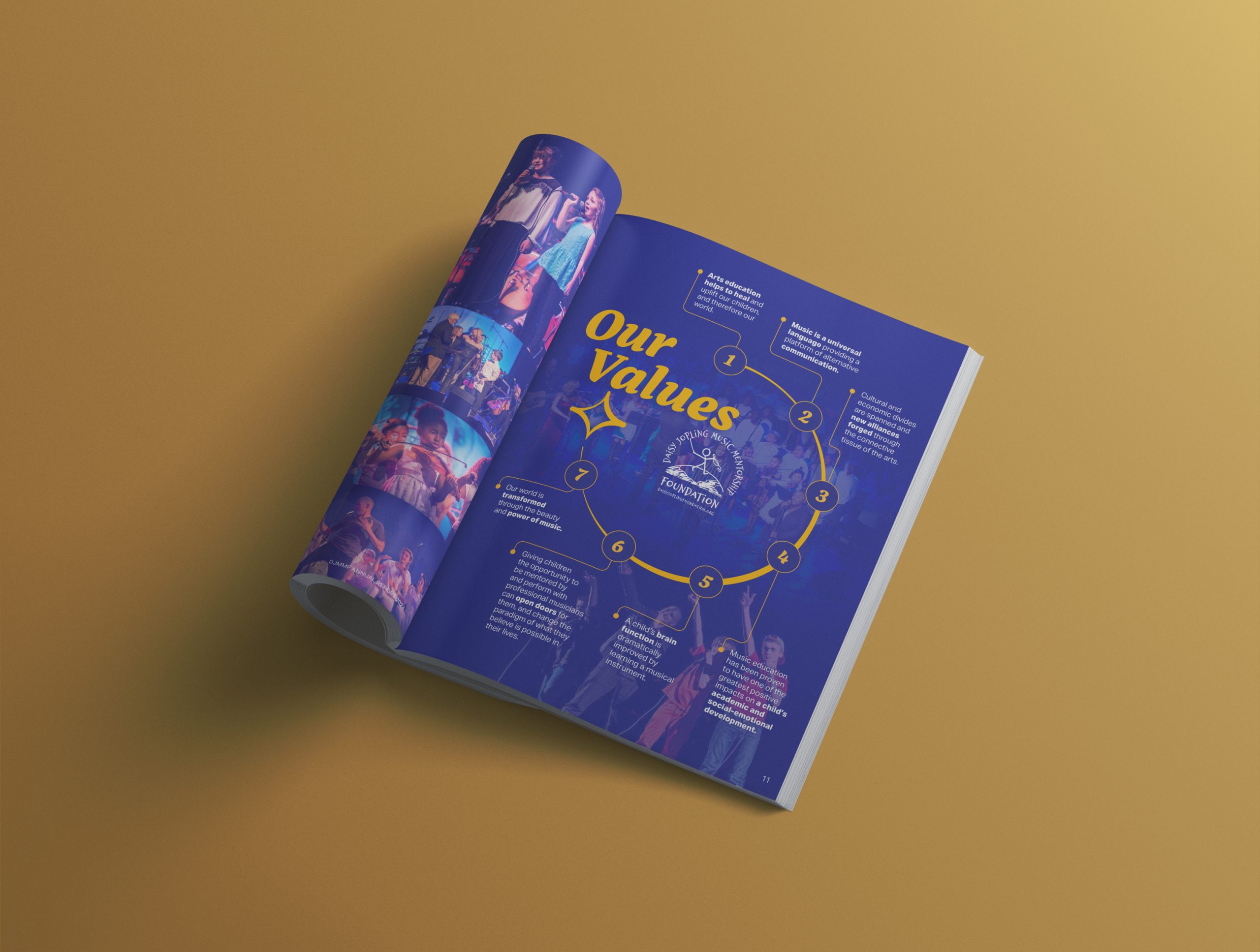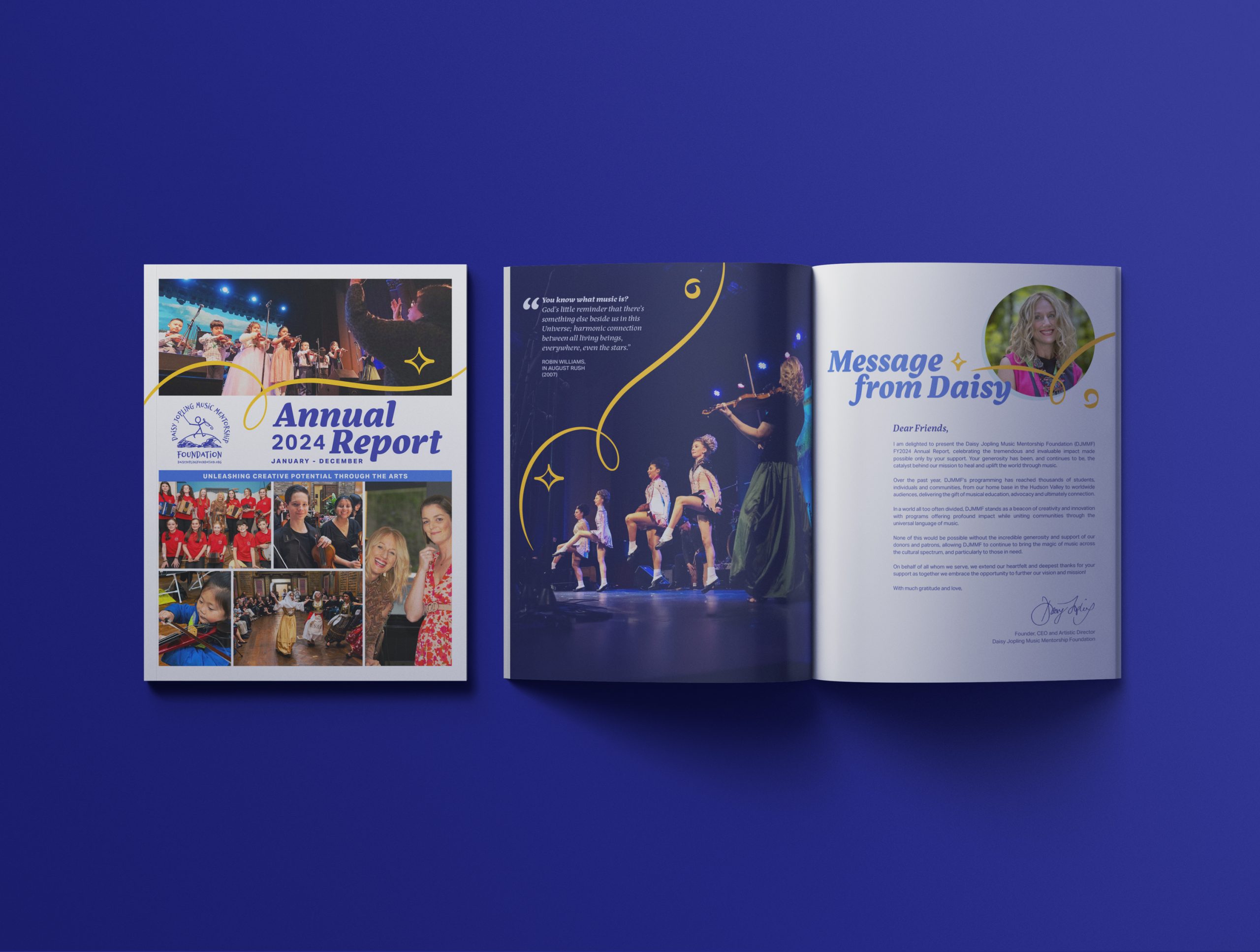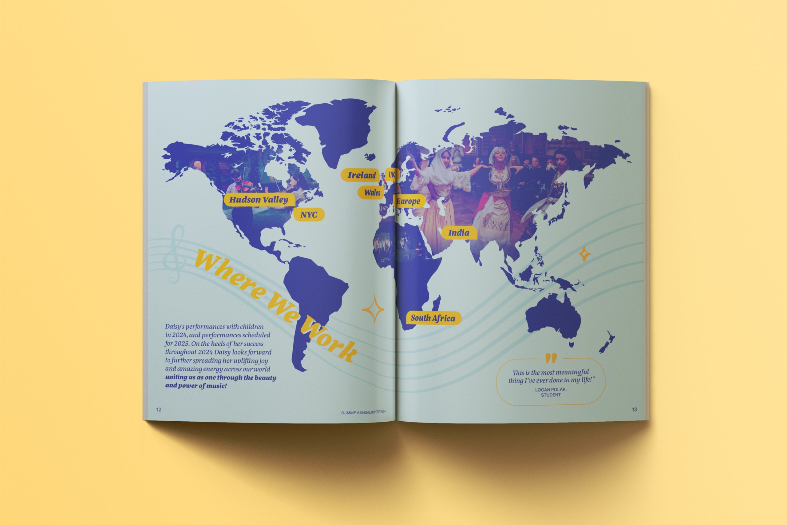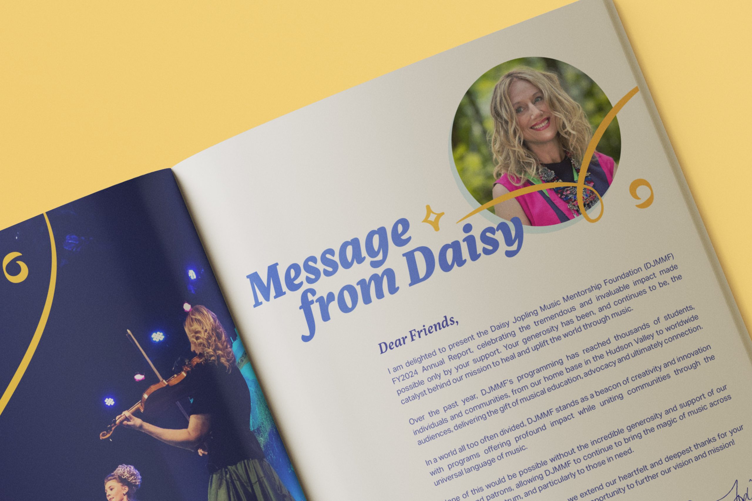 Editorial design for the Daisy Jopling Music Mentorship Foundation’s 2024 annual report, highlighting its music education impact.